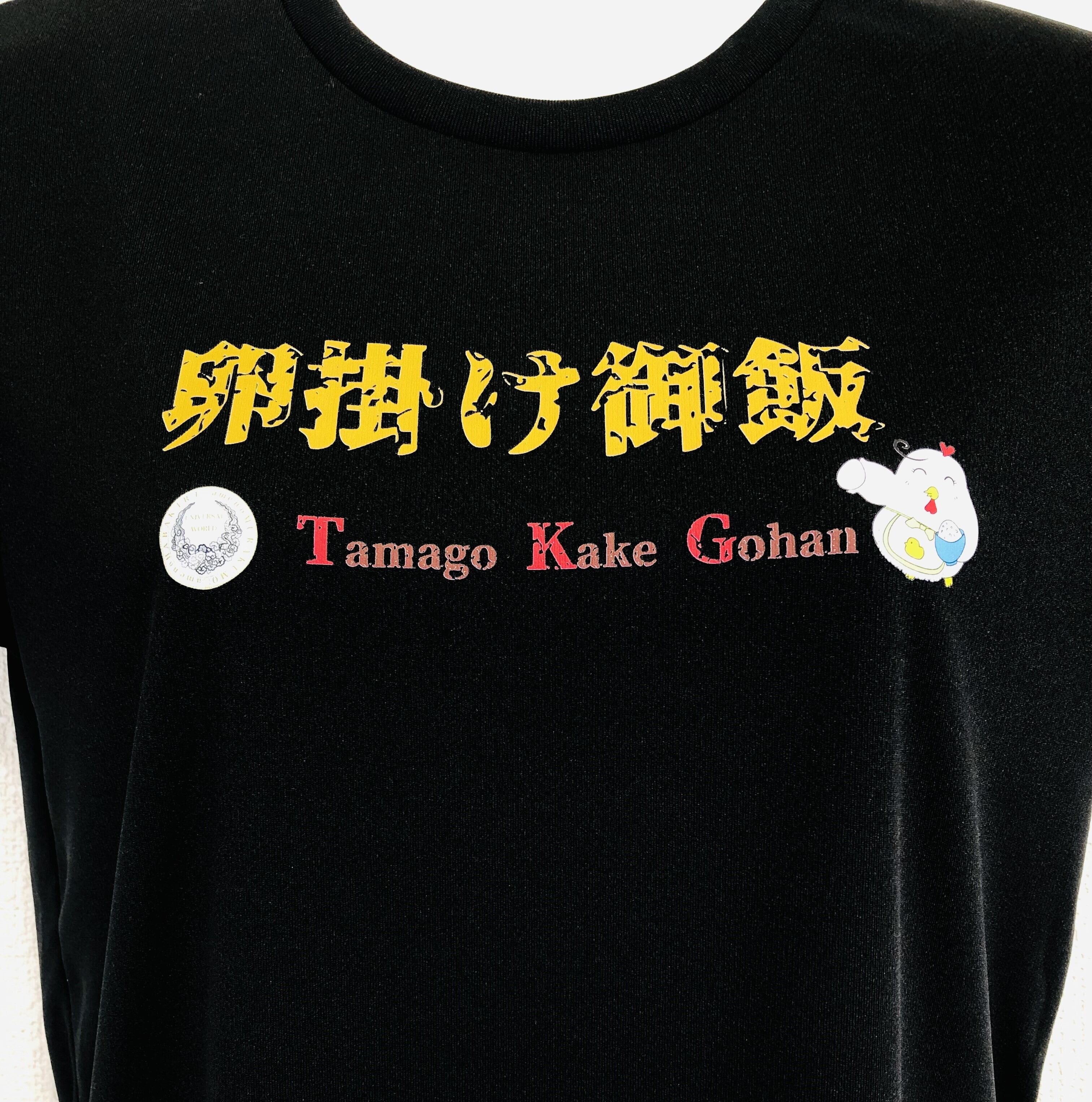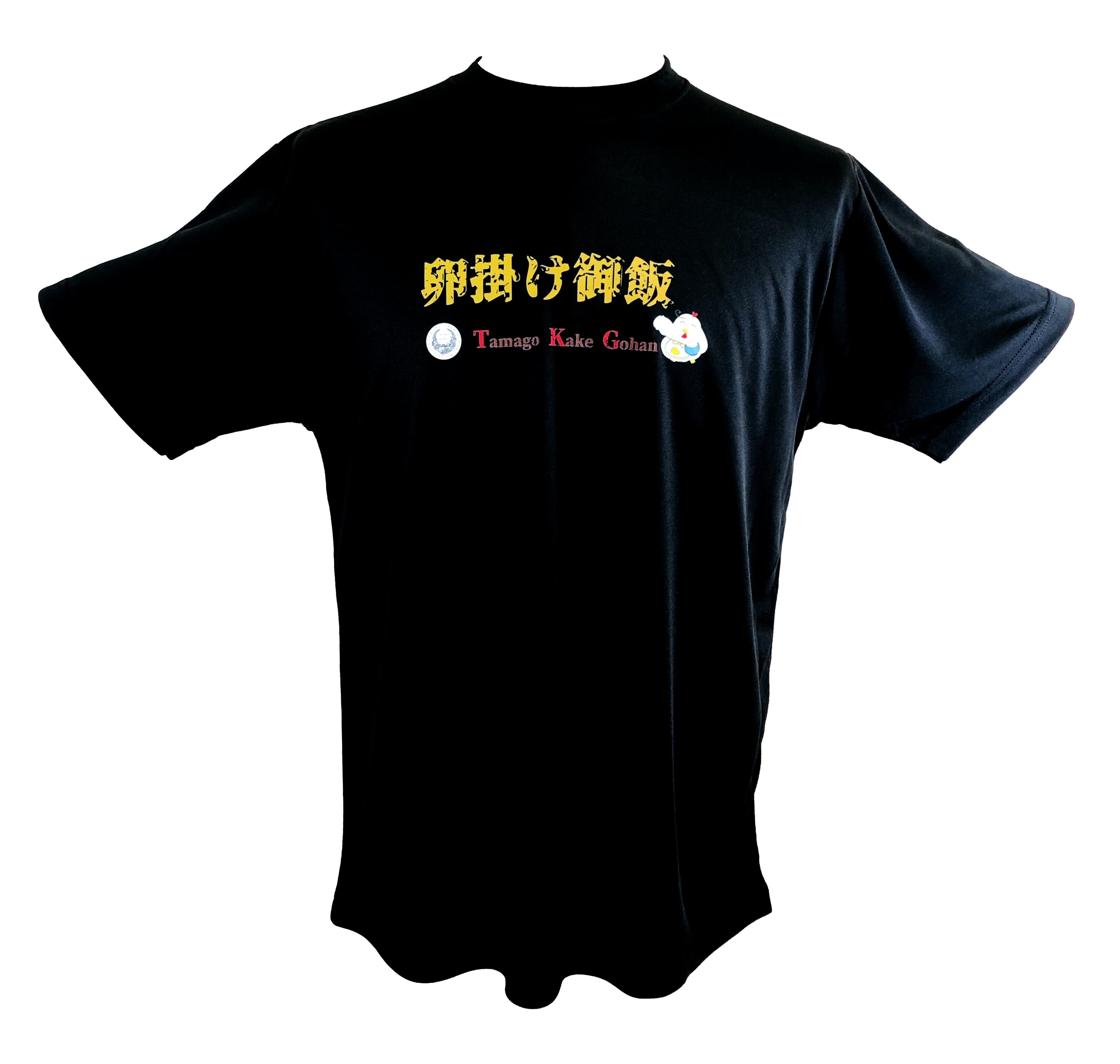 銀の絵本「USAKUMA」の新ブランド【 UNIVERSAL WORLD 】ユニバーサルワールドが, 源界明朝フォントで制作した源界明朝Tシャツ。「卵掛け御飯キャラクター」Tシャツ ブラック ・半袖 | 銀の絵本 「USAKUMA 」