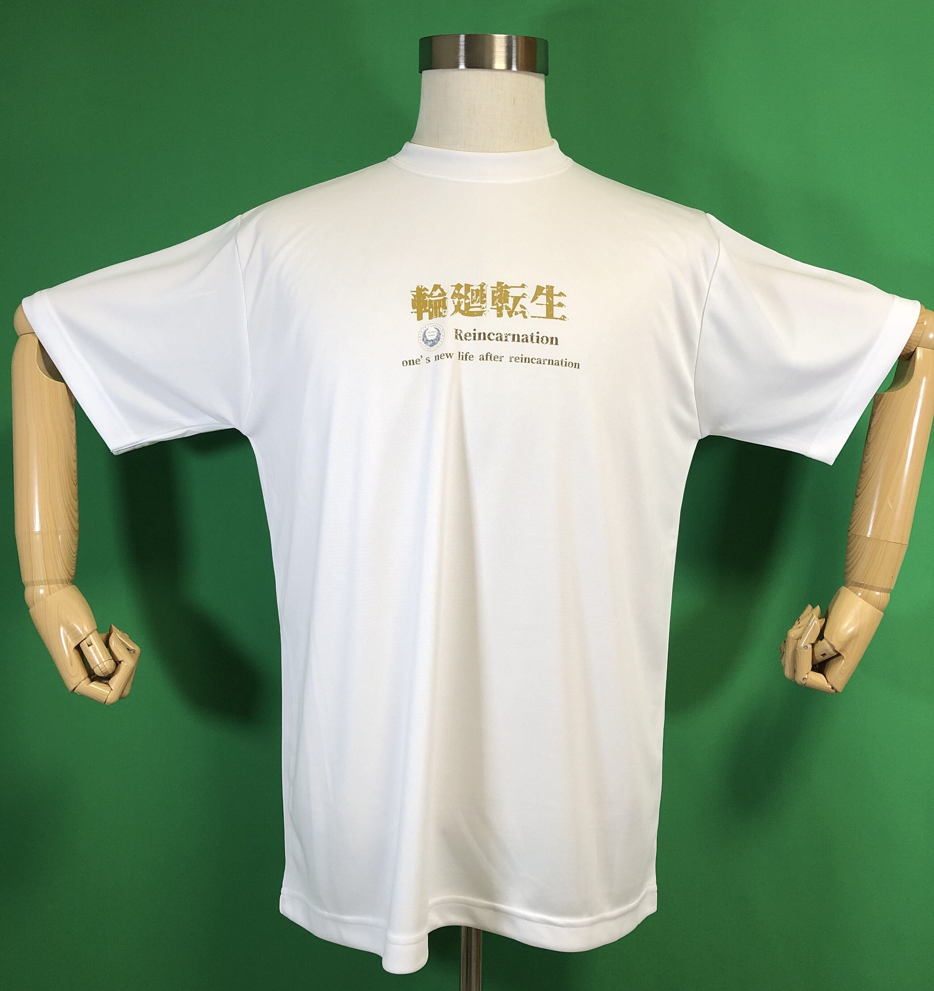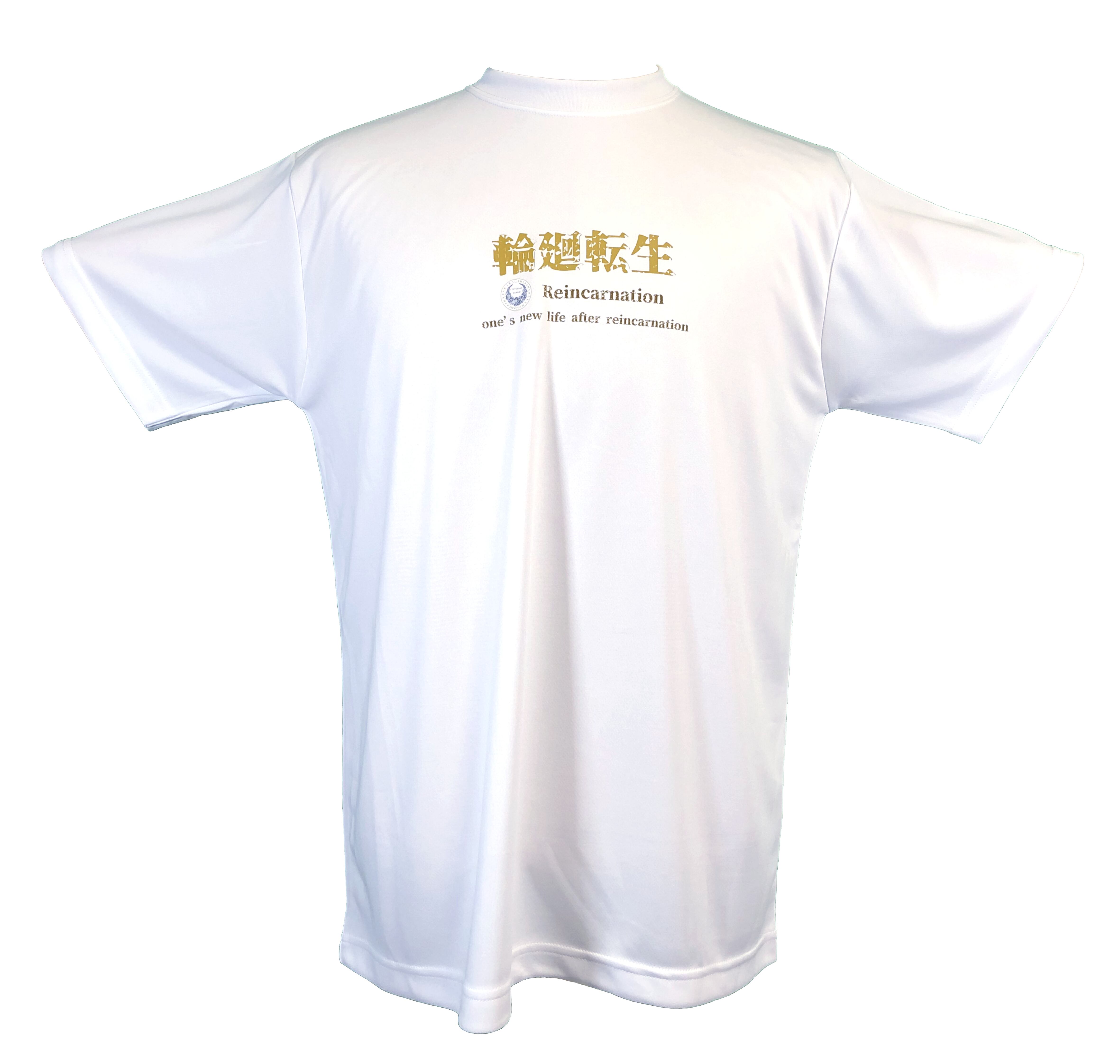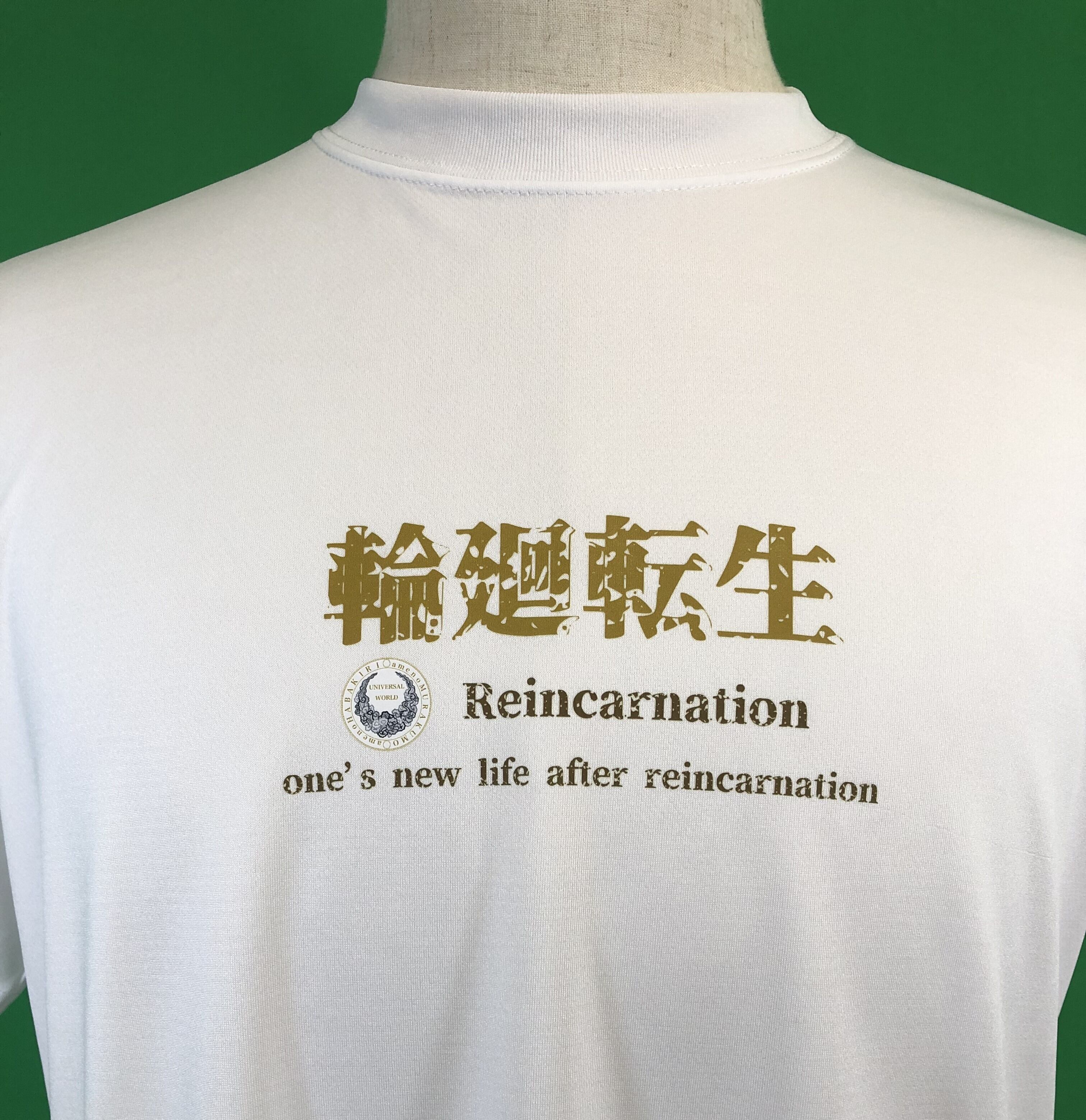 銀の絵本「USAKUMA」の新ブランド【 UNIVERSAL WORLD 】ユニバーサルワールドが, 源界明朝フォントで制作した源界明朝Tシャツ。「輪廻転生」Tシャツ 白・半袖 | 銀の絵本 「USAKUMA 」