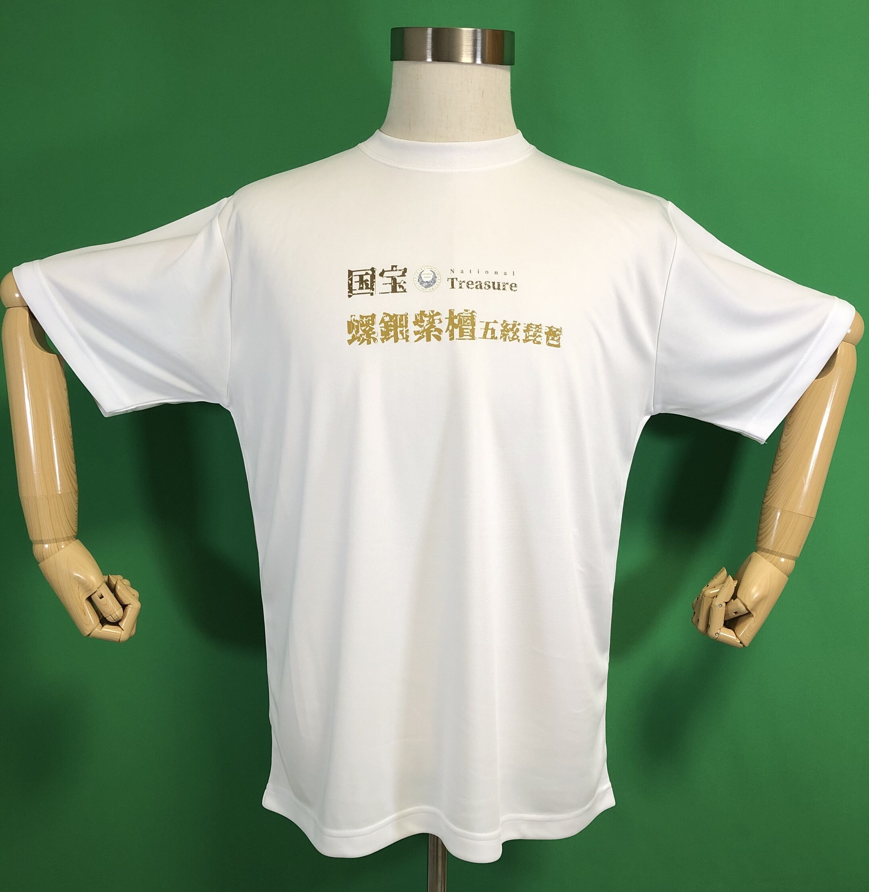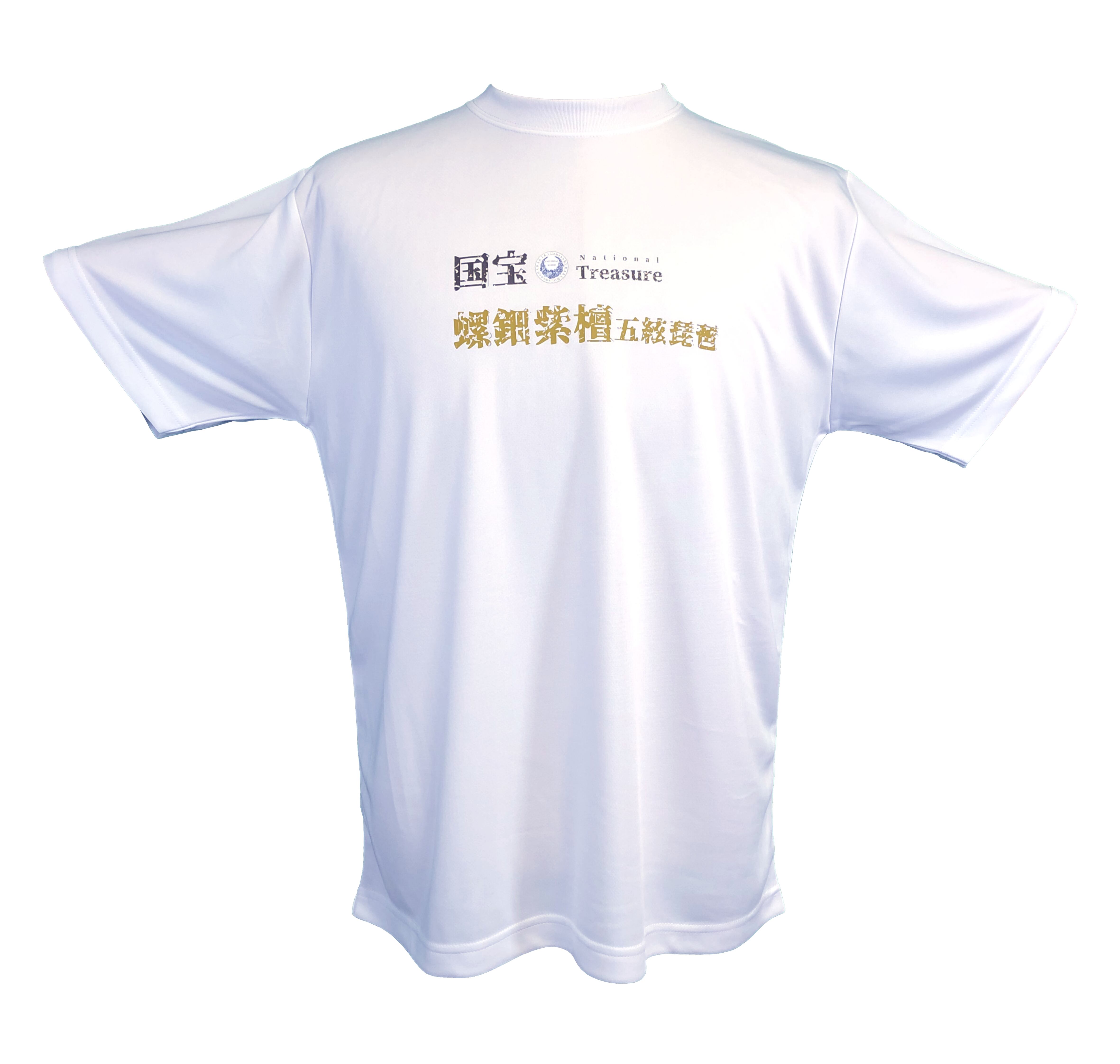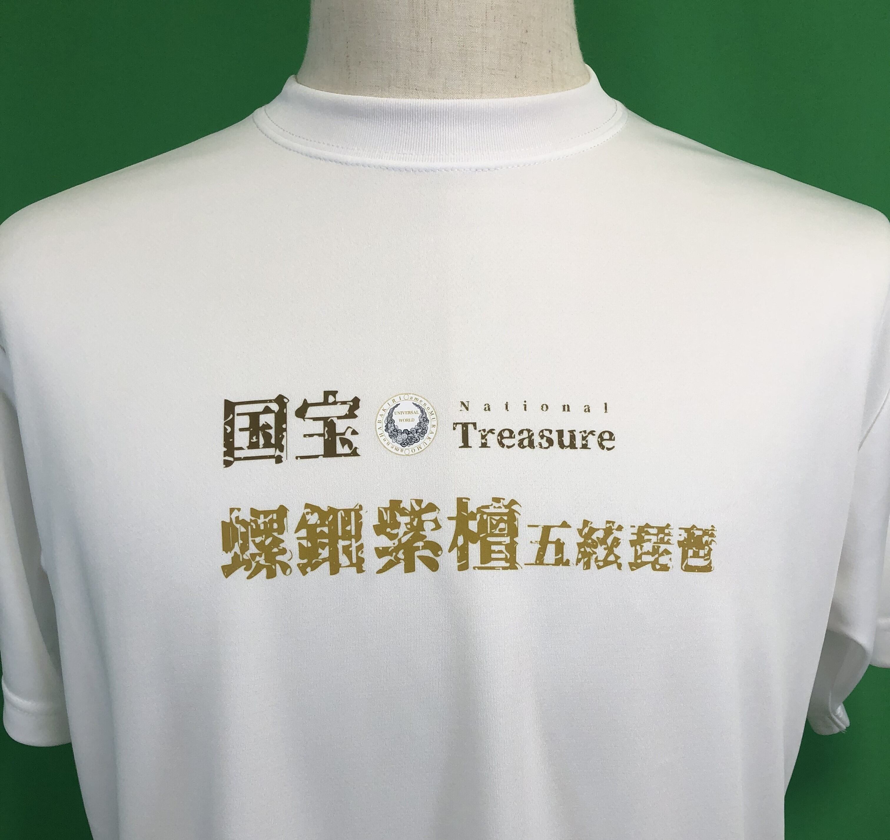 銀の絵本「USAKUMA」の新ブランド【 UNIVERSAL WORLD 】ユニバーサルワールドが, 源界明朝フォントで制作した源界明朝Tシャツ。「国宝螺鈿紫檀五弦琵琶」Tシャツ 白・半袖 | 銀の絵本 「USAKUMA 」