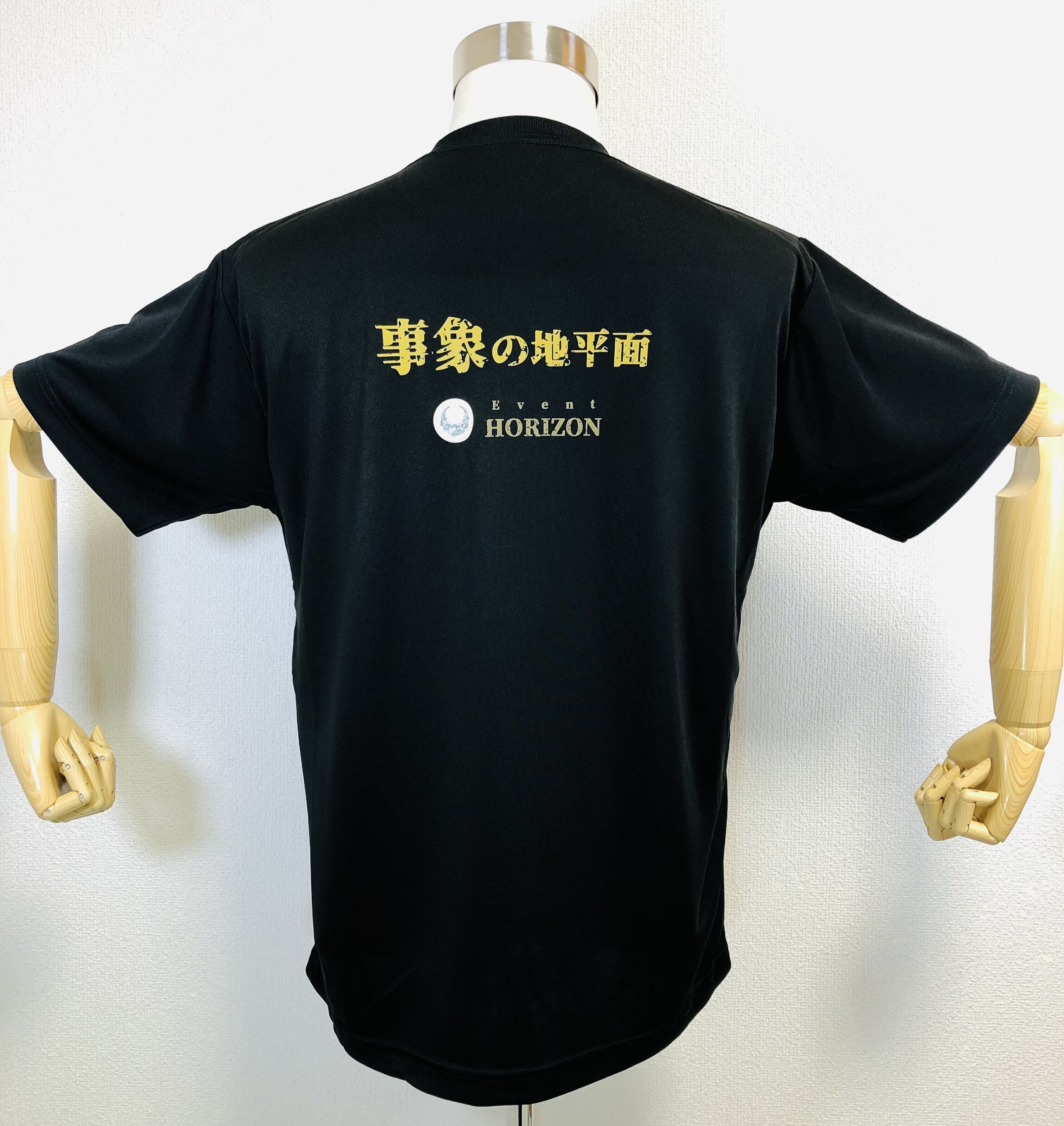 銀の絵本「USAKUMA」の新ブランド【 UNIVERSAL WORLD 】ユニバーサルワールドが, 源界明朝フォントで制作した源界明朝Tシャツ。「事象の地平面」Tシャツ ブラック・背中プリント・半袖 | 銀の絵本 「USAKUMA 」