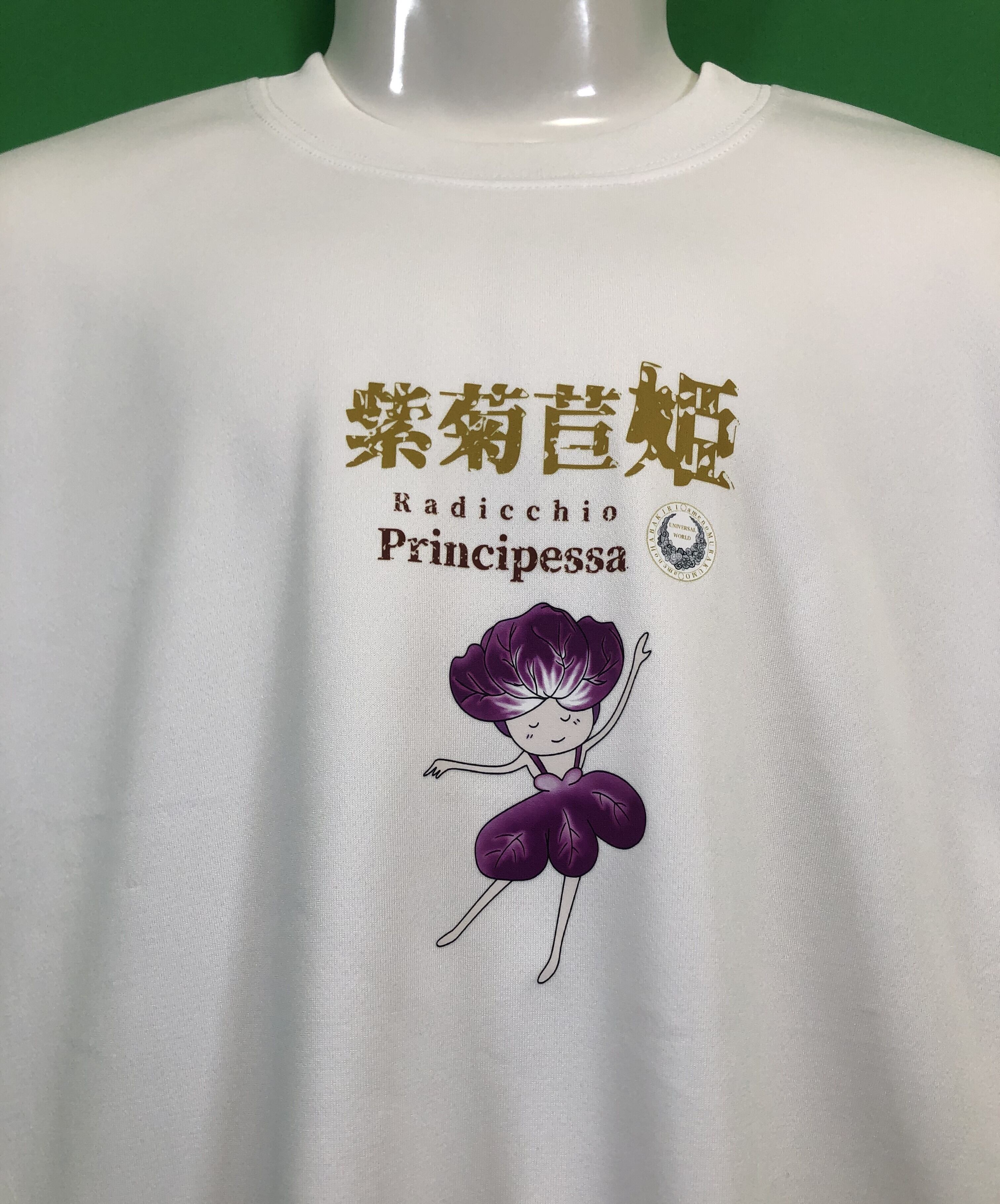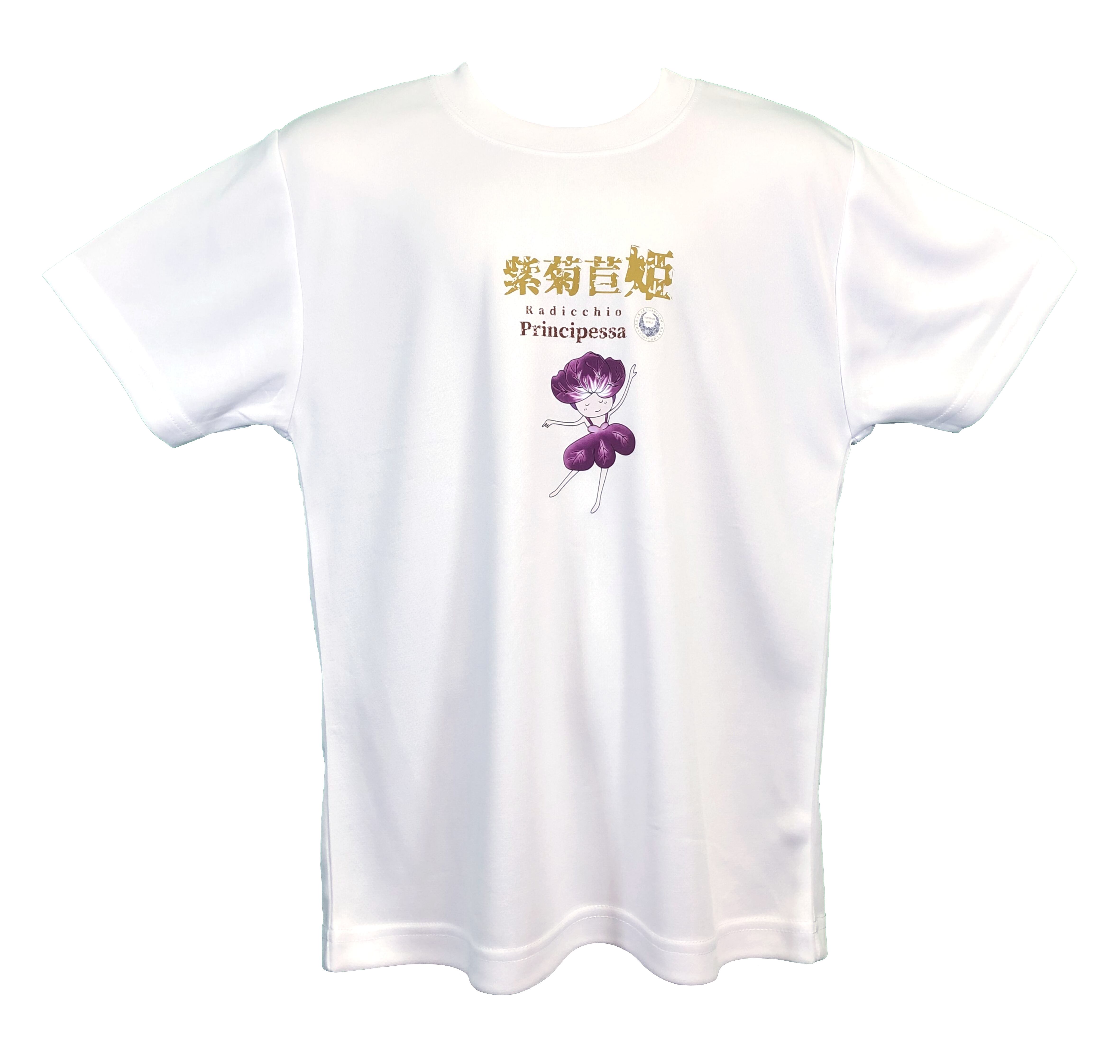 銀の絵本「USAKUMA」の新ブランド【 UNIVERSAL WORLD 】ユニバーサルワールドが, 源界明朝フォントで制作した源界明朝Tシャツ。「紫菊苣姫」Tシャツ 白・半袖・キッズ | 銀の絵本 「USAKUMA 」