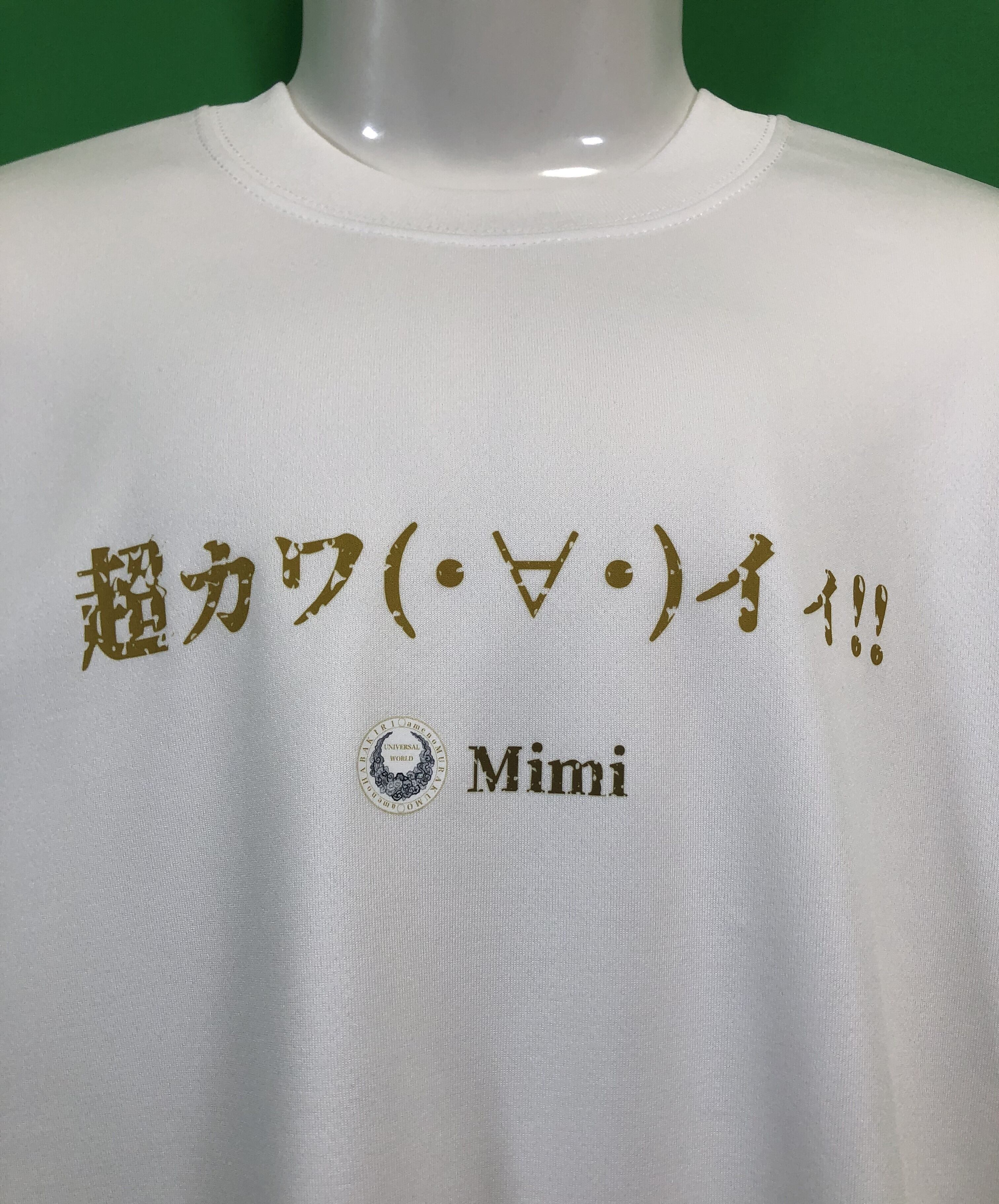 銀の絵本「USAKUMA」の新ブランド【 UNIVERSAL WORLD 】ユニバーサルワールドが, 源界明朝フォントで制作した源界明朝Tシャツ。「超カワイイ」Tシャツ 白・半袖・キッズ | 銀の絵本 「USAKUMA 」
