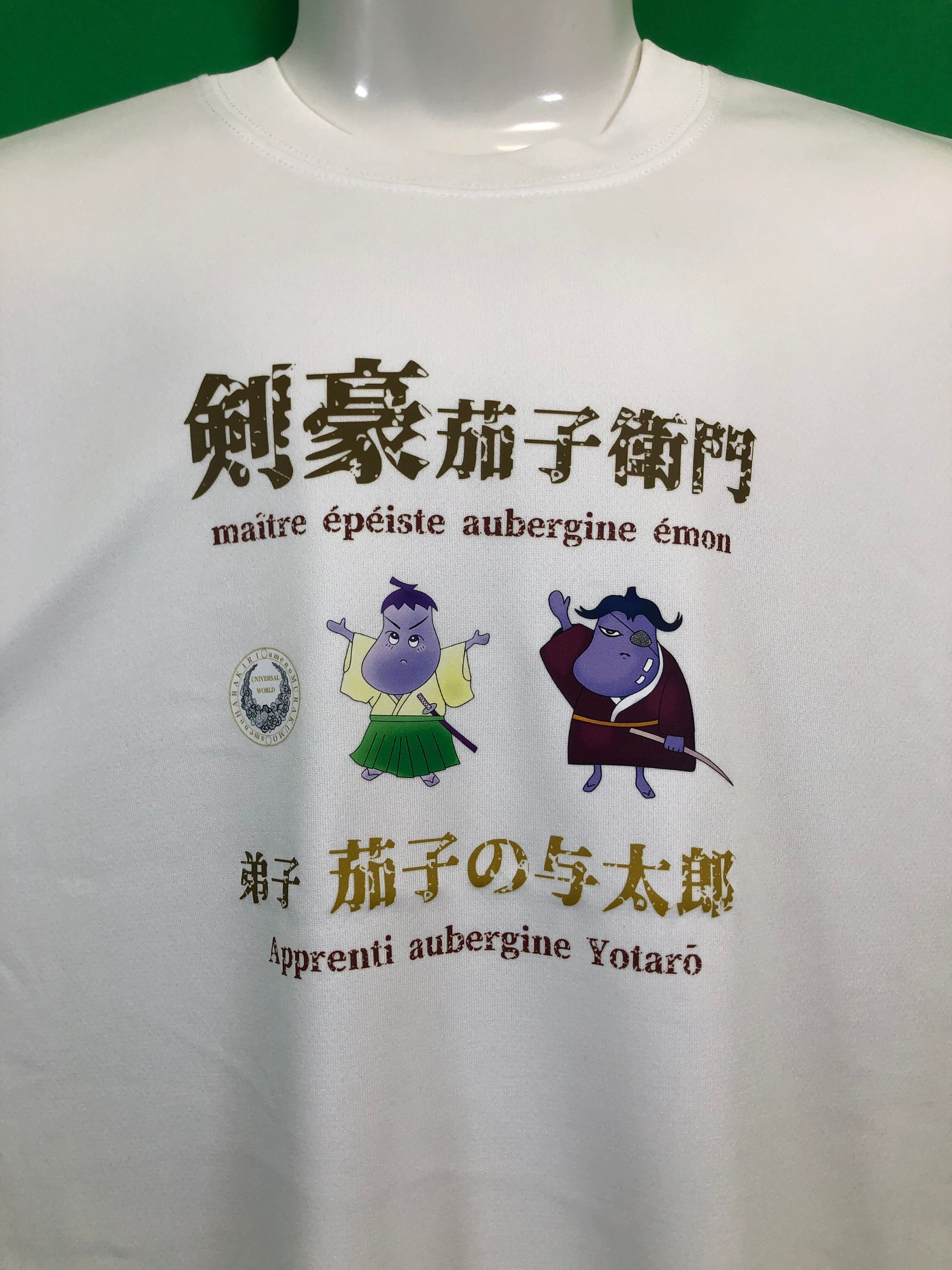 銀の絵本「USAKUMA」の新ブランド【 UNIVERSAL WORLD 】ユニバーサルワールドが, 源界明朝フォントで制作した源界明朝Tシャツ。「剣豪茄子衛門」Tシャツ 白・半袖・キッズ | 銀の絵本 「USAKUMA 」