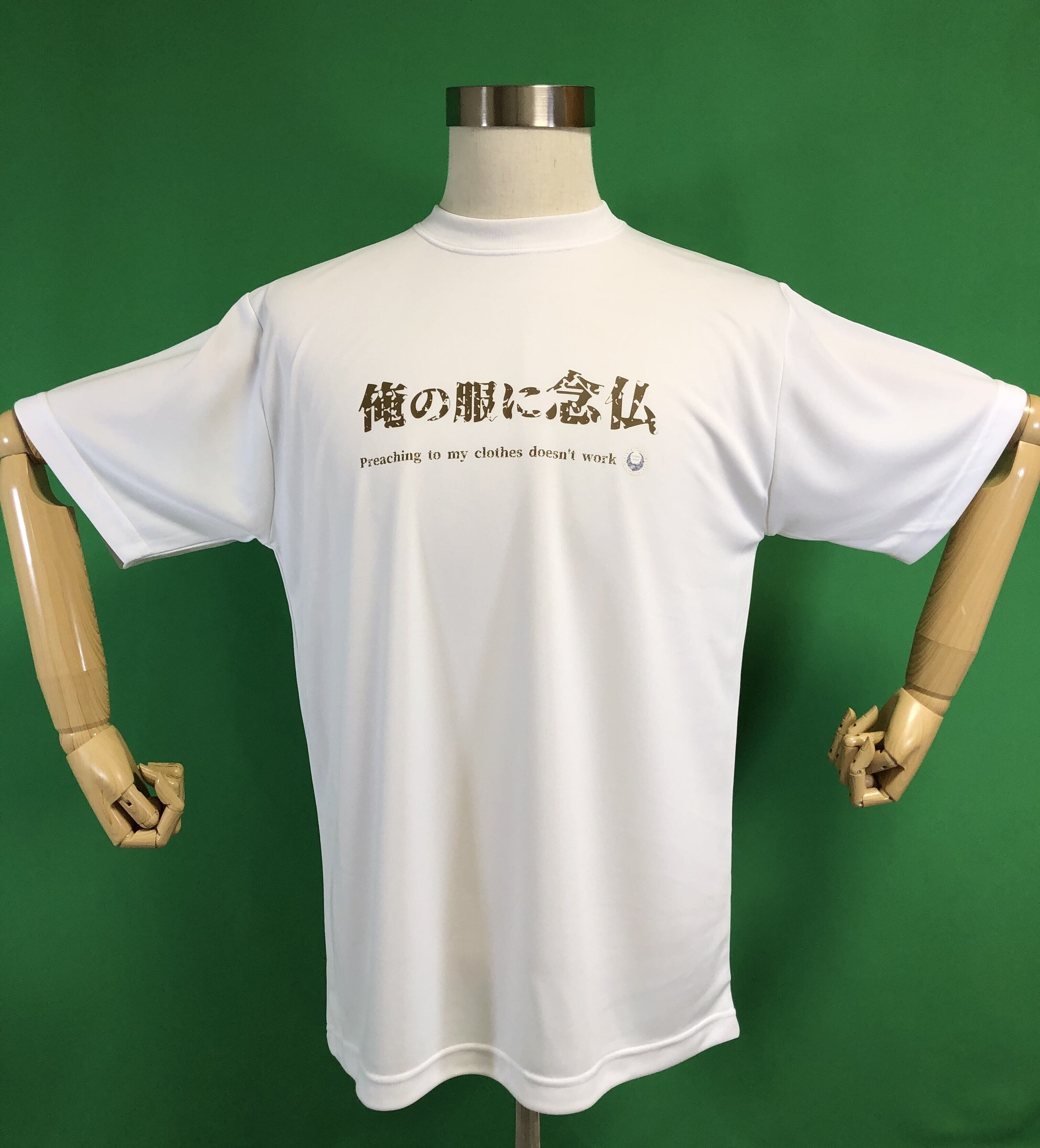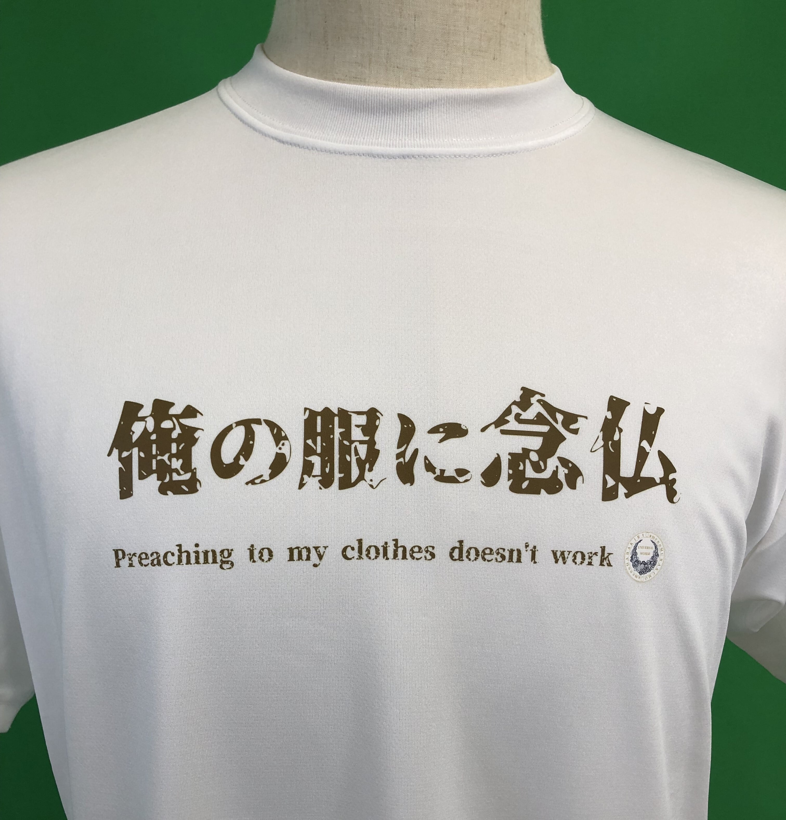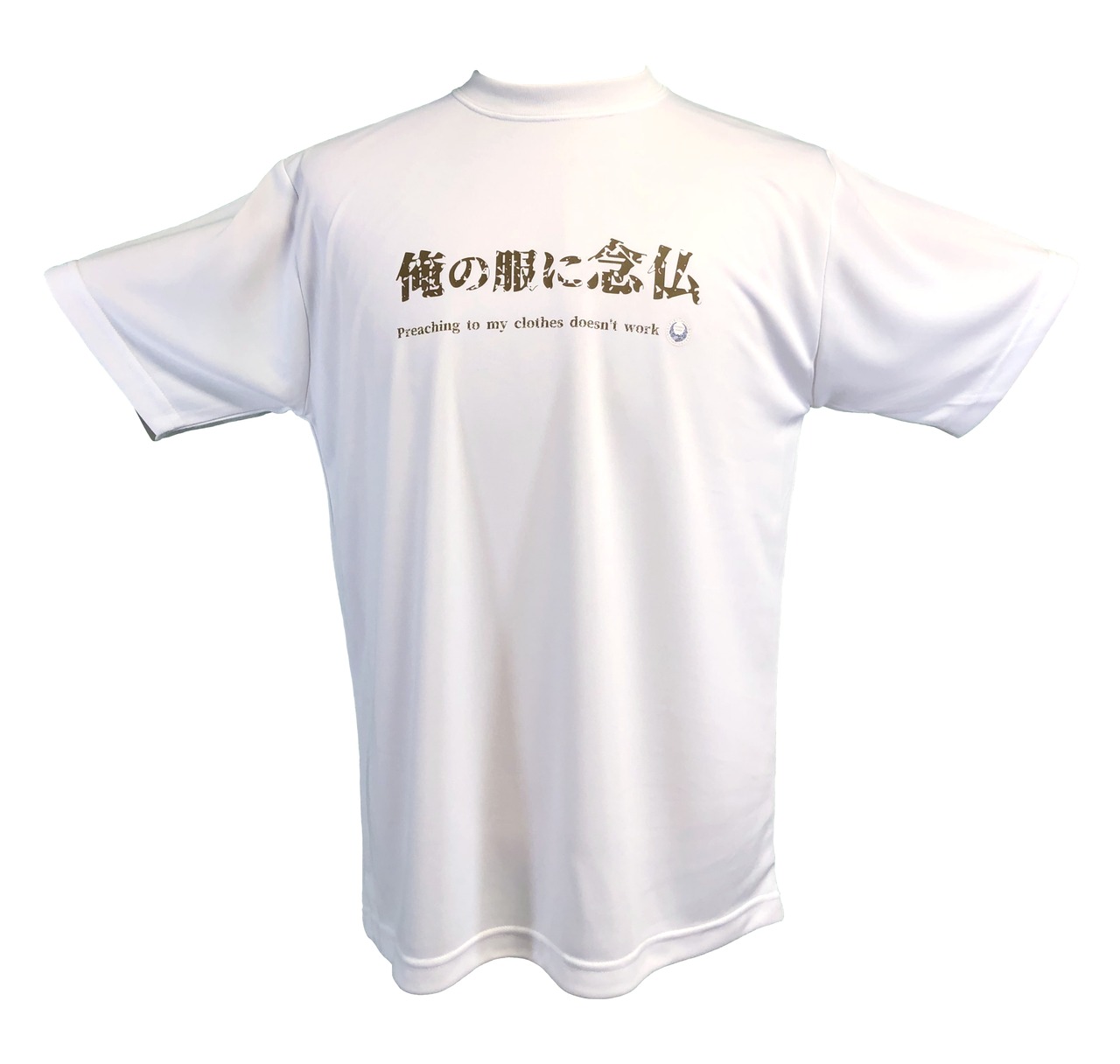 銀の絵本「USAKUMA」の新ブランド【 UNIVERSAL WORLD 】ユニバーサルワールドが, 源界明朝フォントで制作した源界明朝Tシャツ。「俺の服に念仏」Tシャツ 白・半袖 | 銀の絵本 「USAKUMA 」