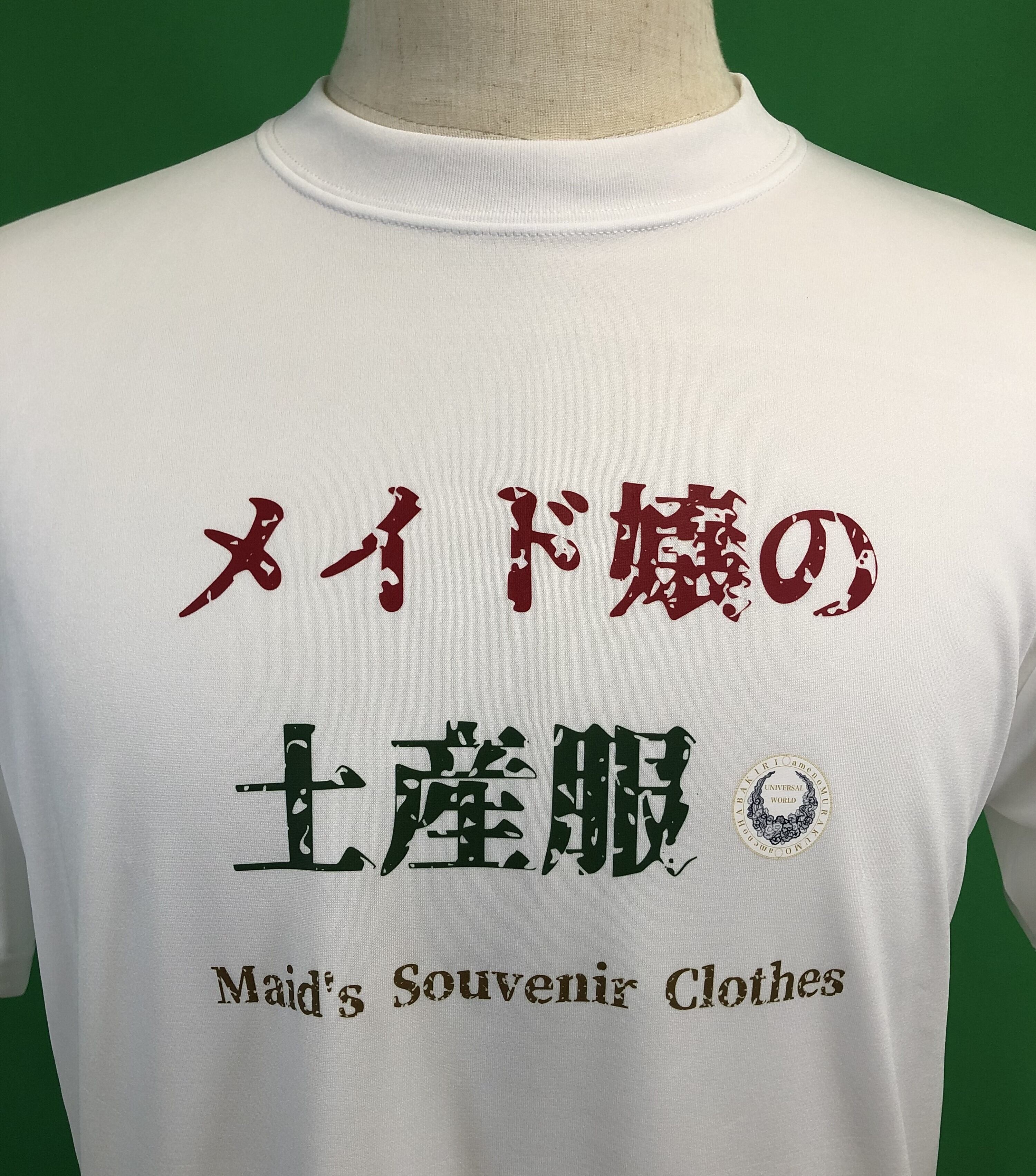 銀の絵本「USAKUMA」の新ブランド【 UNIVERSAL WORLD 】ユニバーサルワールドが, 源界明朝フォントで制作した源界明朝Tシャツ。「メイド嬢の土産服」Tシャツ 白・半袖 | 銀の絵本 「USAKUMA 」