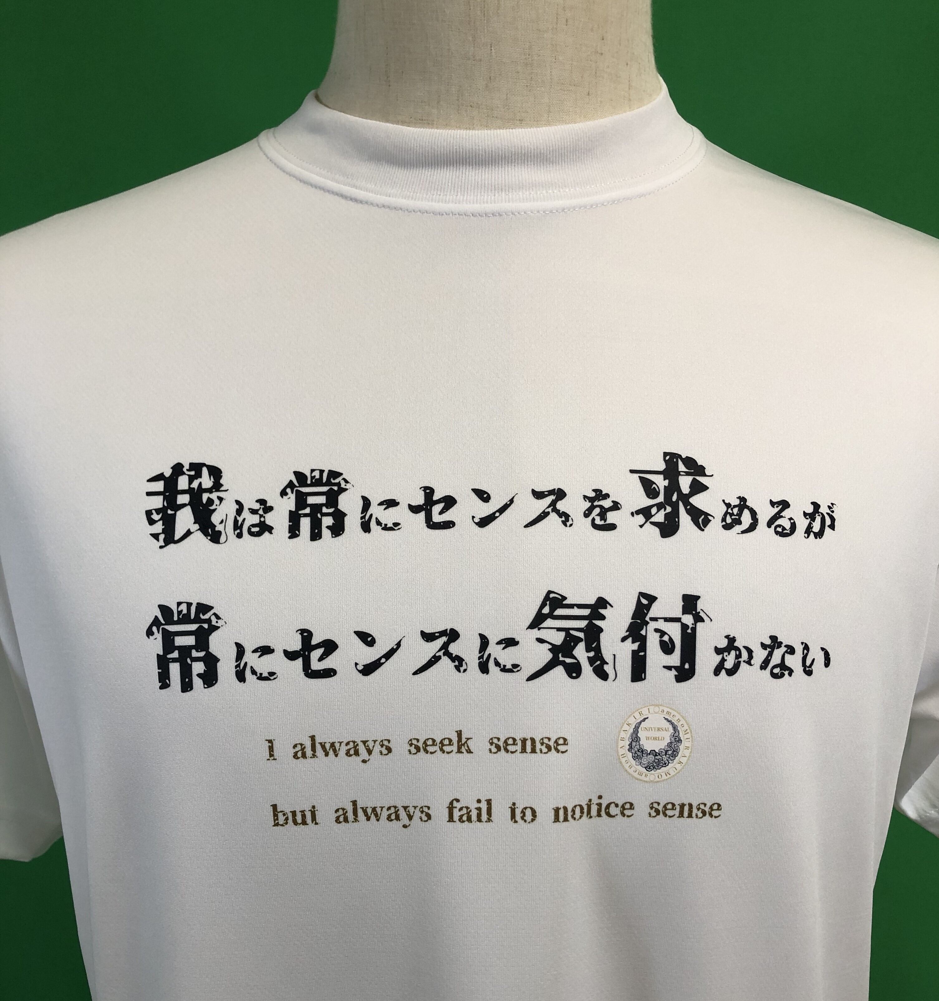 銀の絵本「USAKUMA」の新ブランド【 UNIVERSAL WORLD 】ユニバーサルワールドが, 源界明朝フォントで制作した源界明朝Tシャツ。「我は常にセンスを求めるが」Tシャツ 白・半袖 | 銀の絵本 「USAKUMA 」