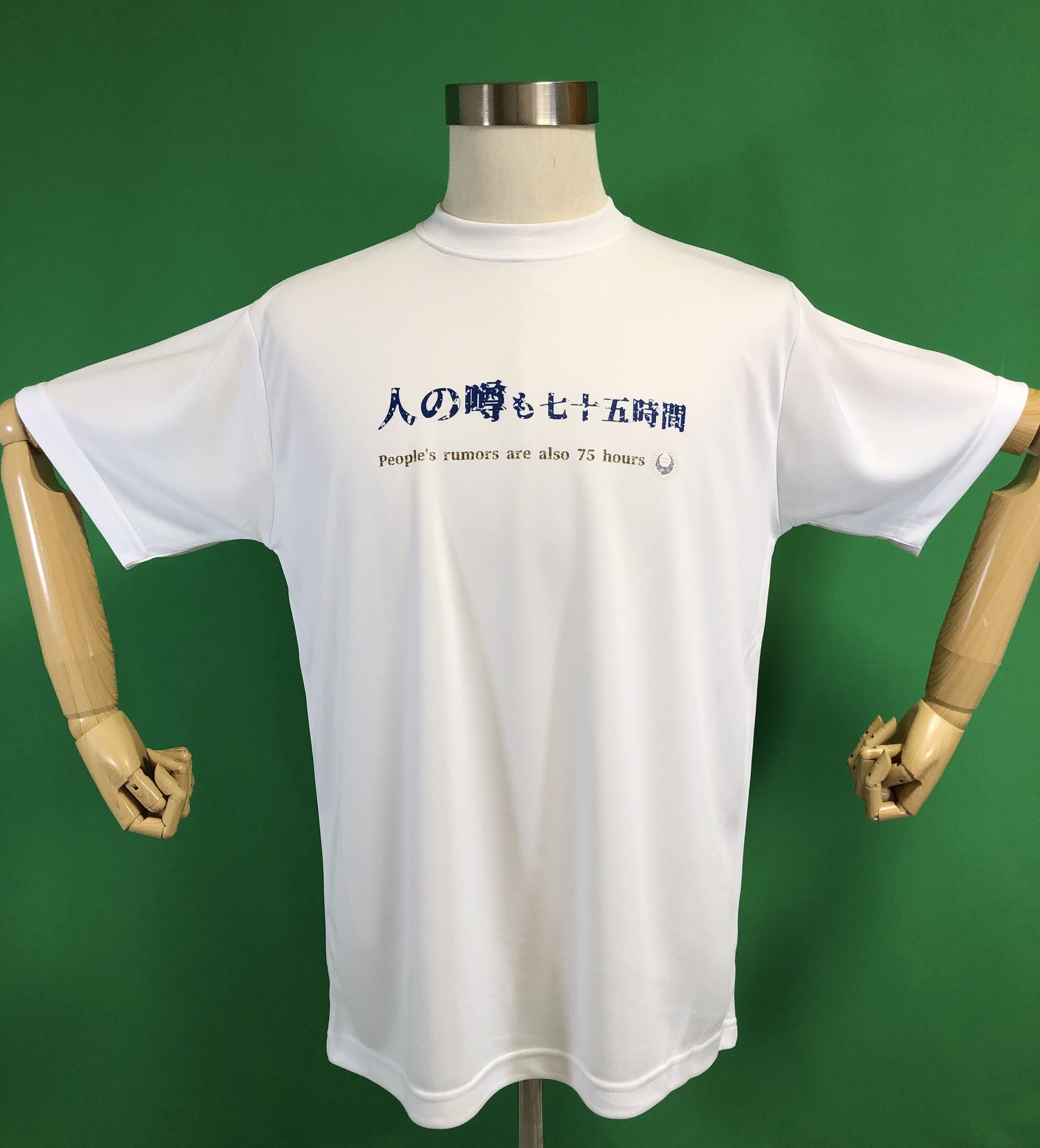 銀の絵本「USAKUMA」の新ブランド【 UNIVERSAL WORLD 】ユニバーサルワールドが, 源界明朝フォントで制作した源界明朝Tシャツ。「人の噂も七十五時間」Tシャツ 白・半袖 | 銀の絵本 「USAKUMA 」