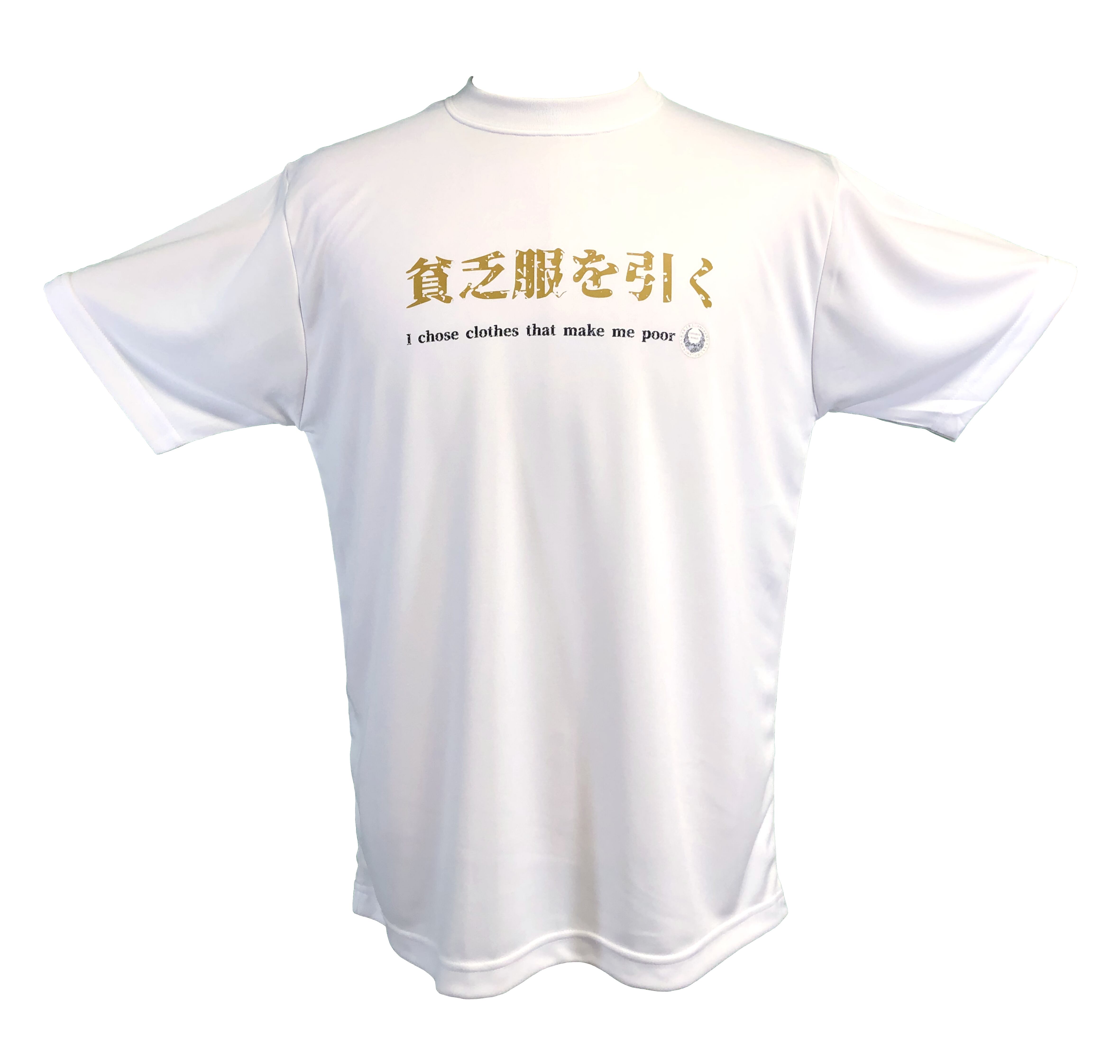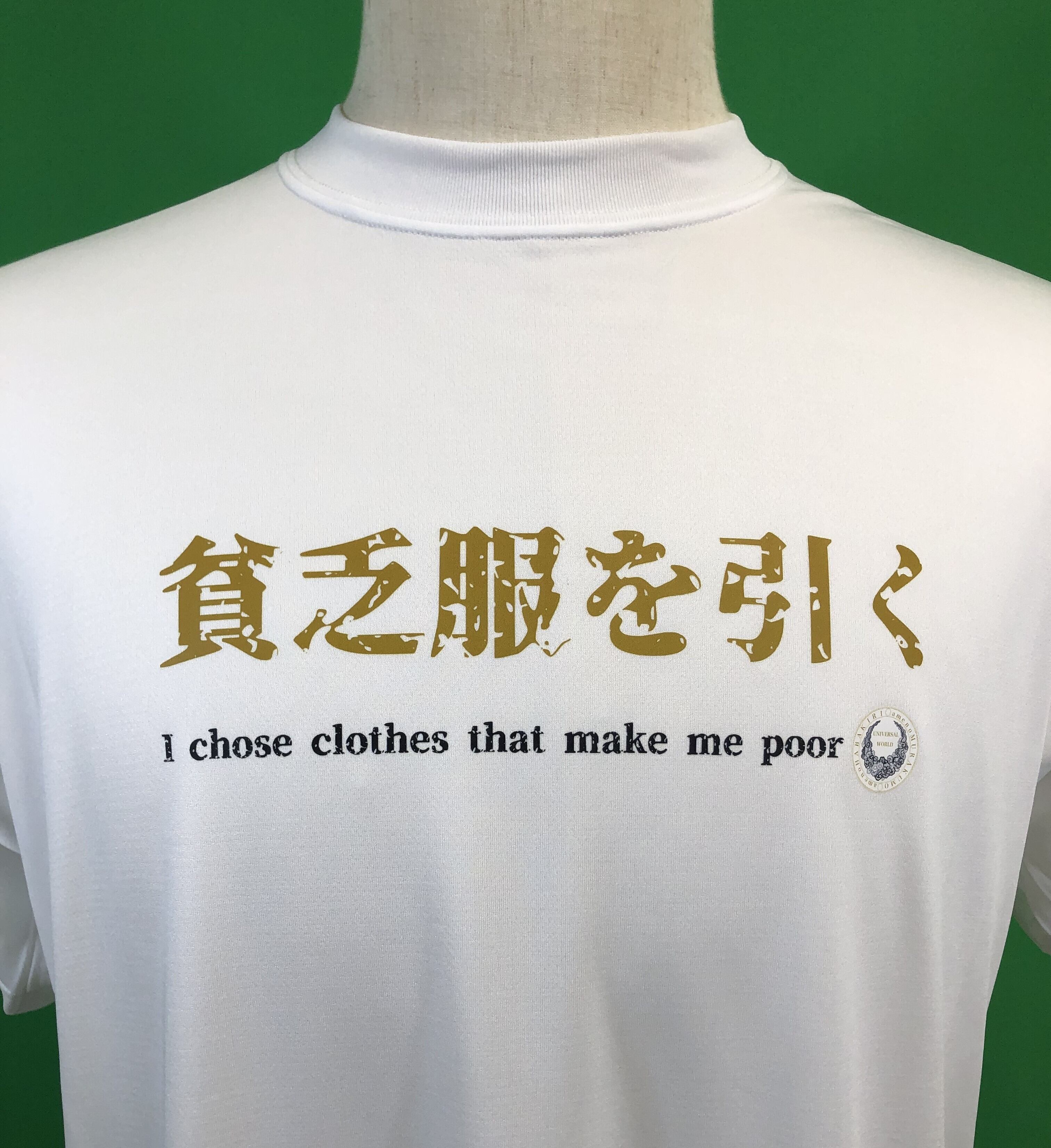 銀の絵本「USAKUMA」の新ブランド【 UNIVERSAL WORLD 】ユニバーサルワールドが, 源界明朝フォントで制作した源界明朝Tシャツ。「貧乏服を引く」Tシャツ 白・半袖 | 銀の絵本 「USAKUMA 」