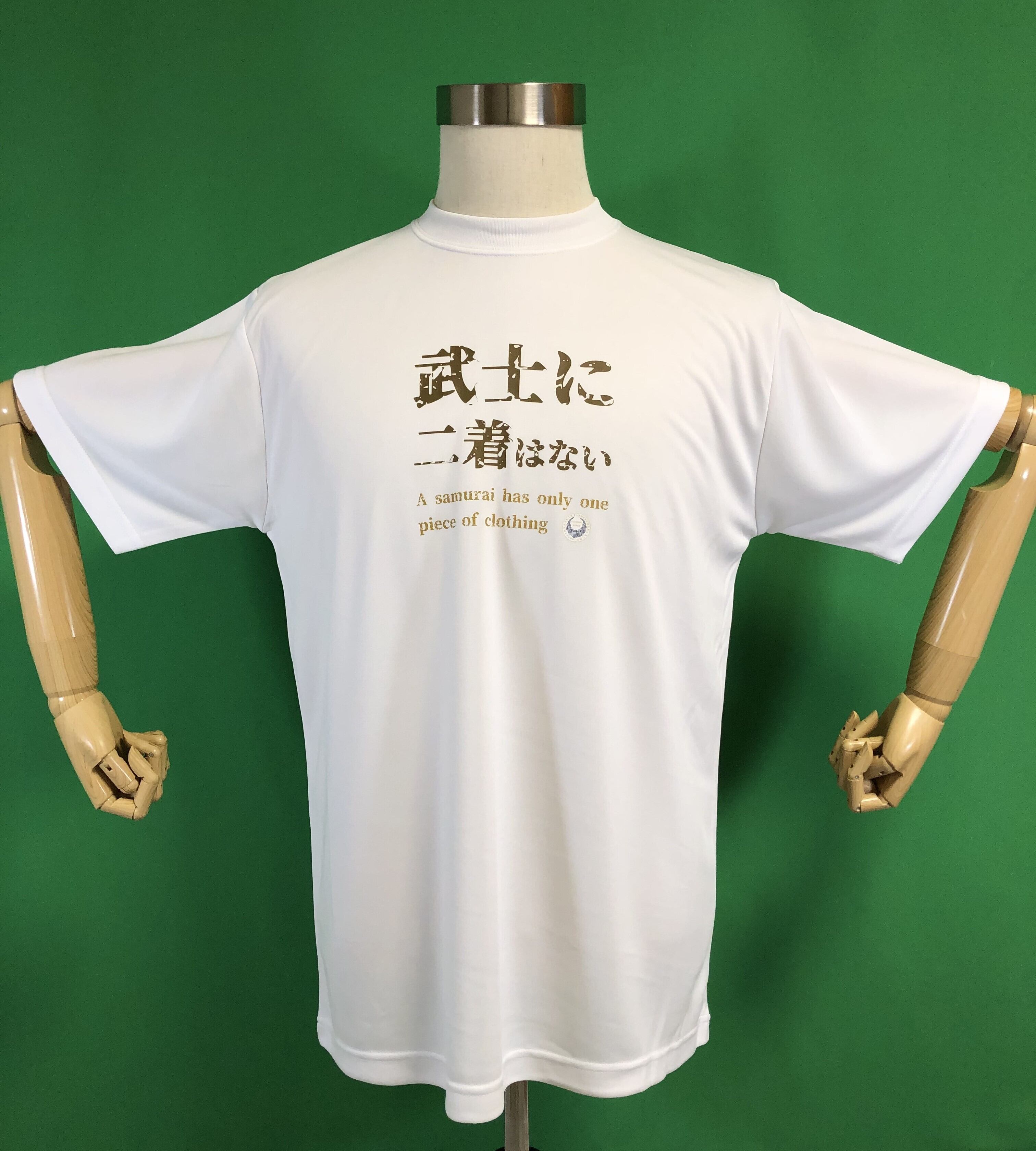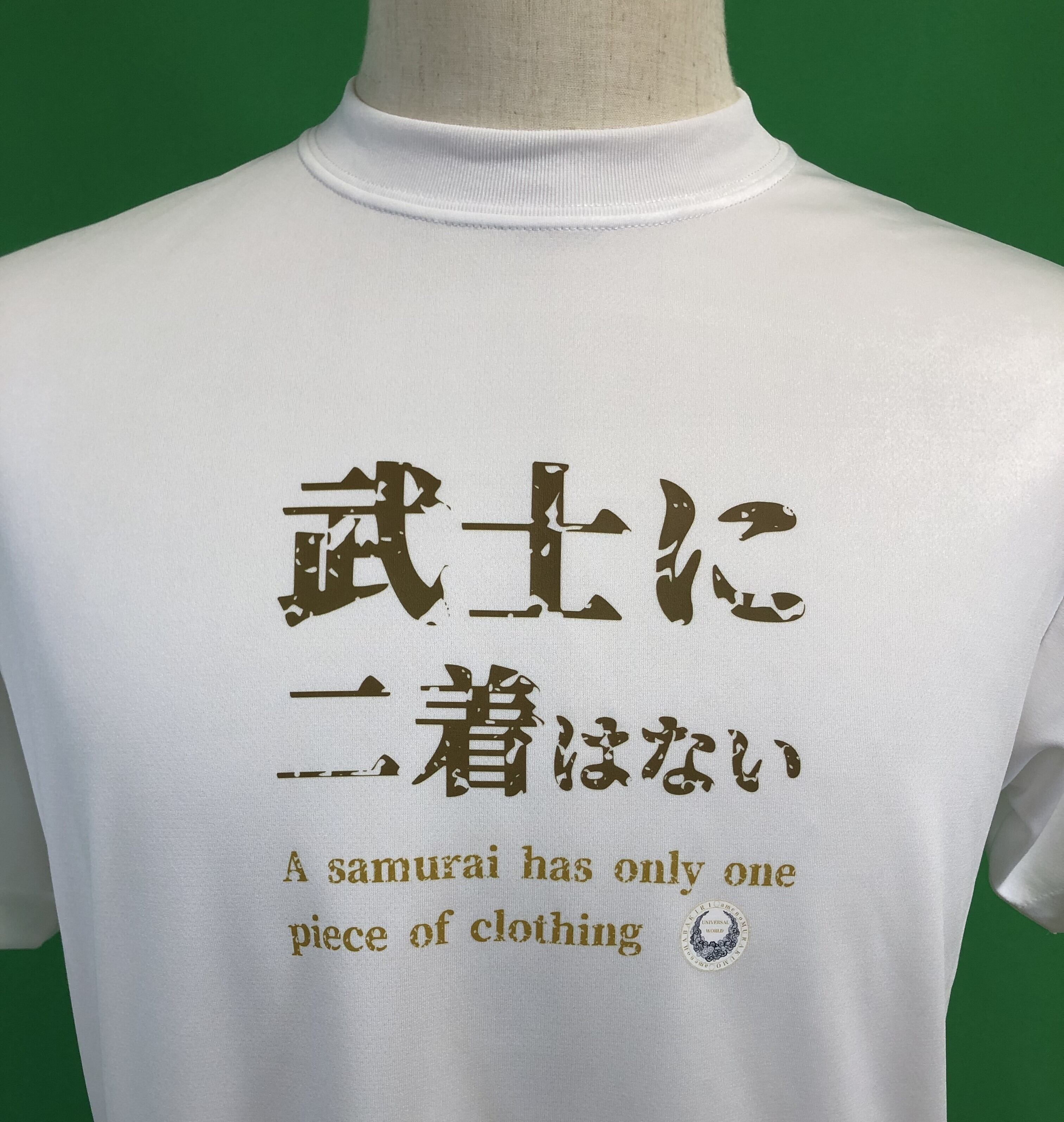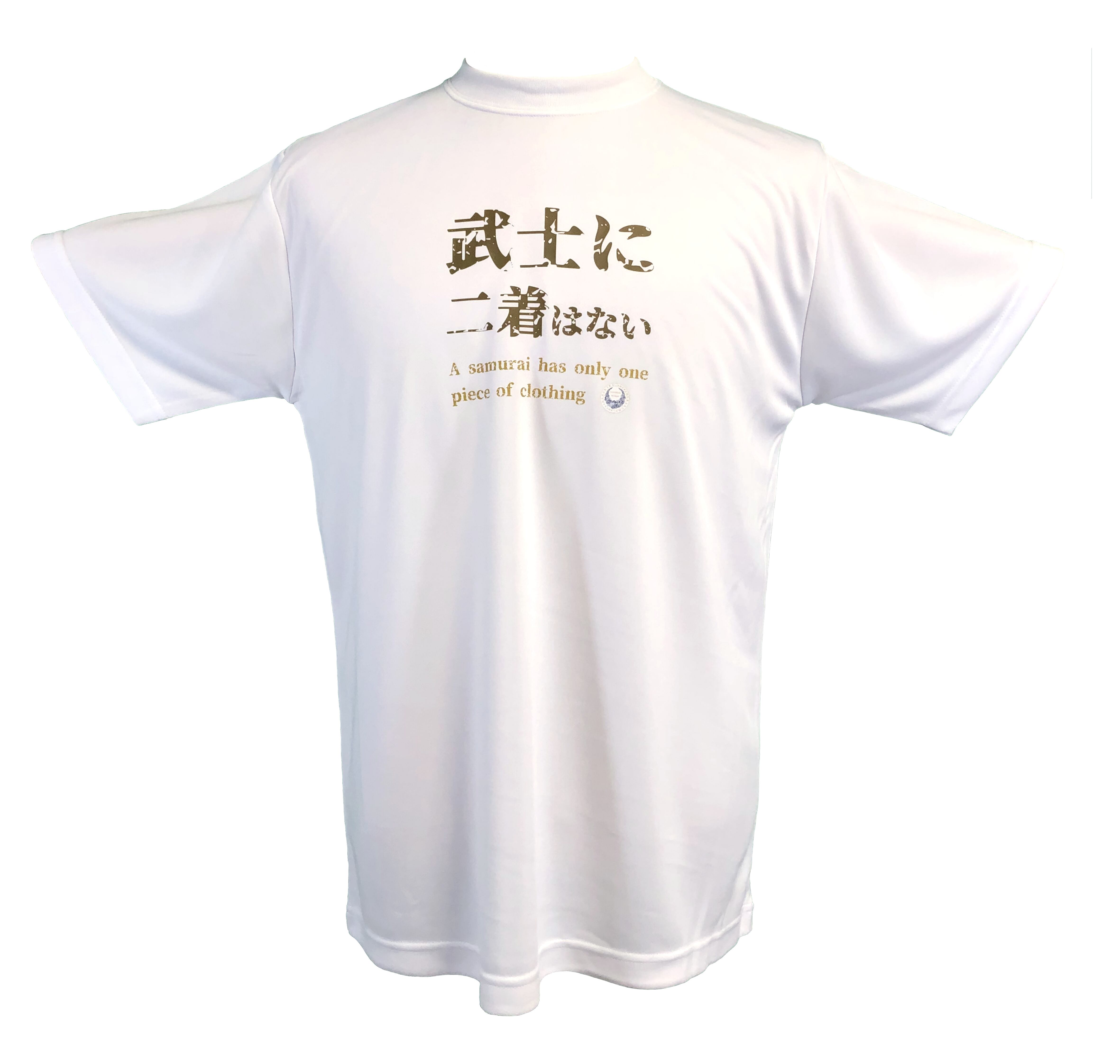 銀の絵本「USAKUMA」の新ブランド【 UNIVERSAL WORLD 】ユニバーサルワールドが, 源界明朝フォントで制作した源界明朝Tシャツ。「武士に二着はない」Tシャツ 白・半袖 | 銀の絵本 「USAKUMA 」