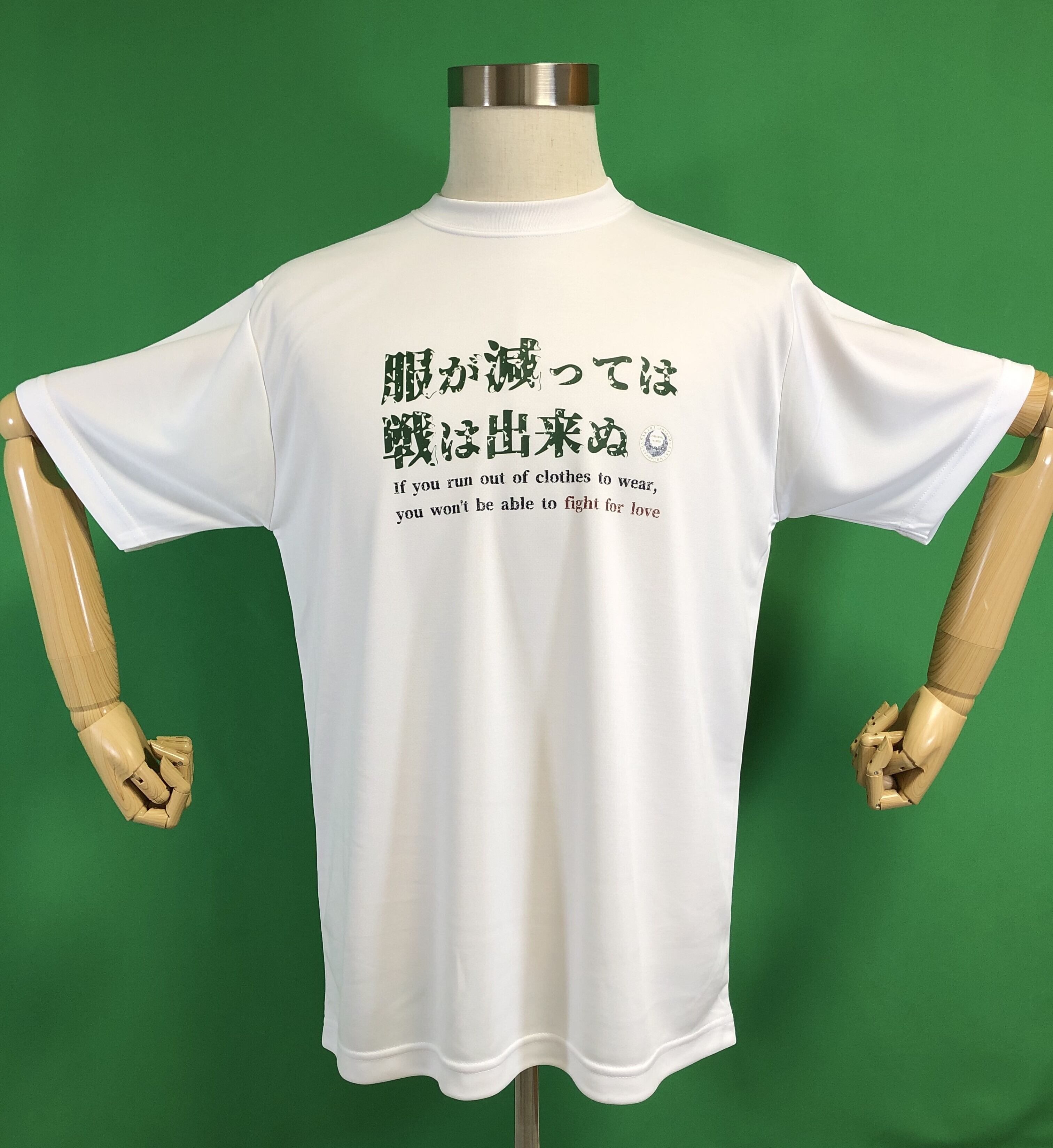 銀の絵本「USAKUMA」の新ブランド【 UNIVERSAL WORLD 】ユニバーサルワールドが, 源界明朝フォントで制作した源界明朝Tシャツ。「服が減っては戦は出来ぬ」Tシャツ 白・半袖 | 銀の絵本 「USAKUMA 」