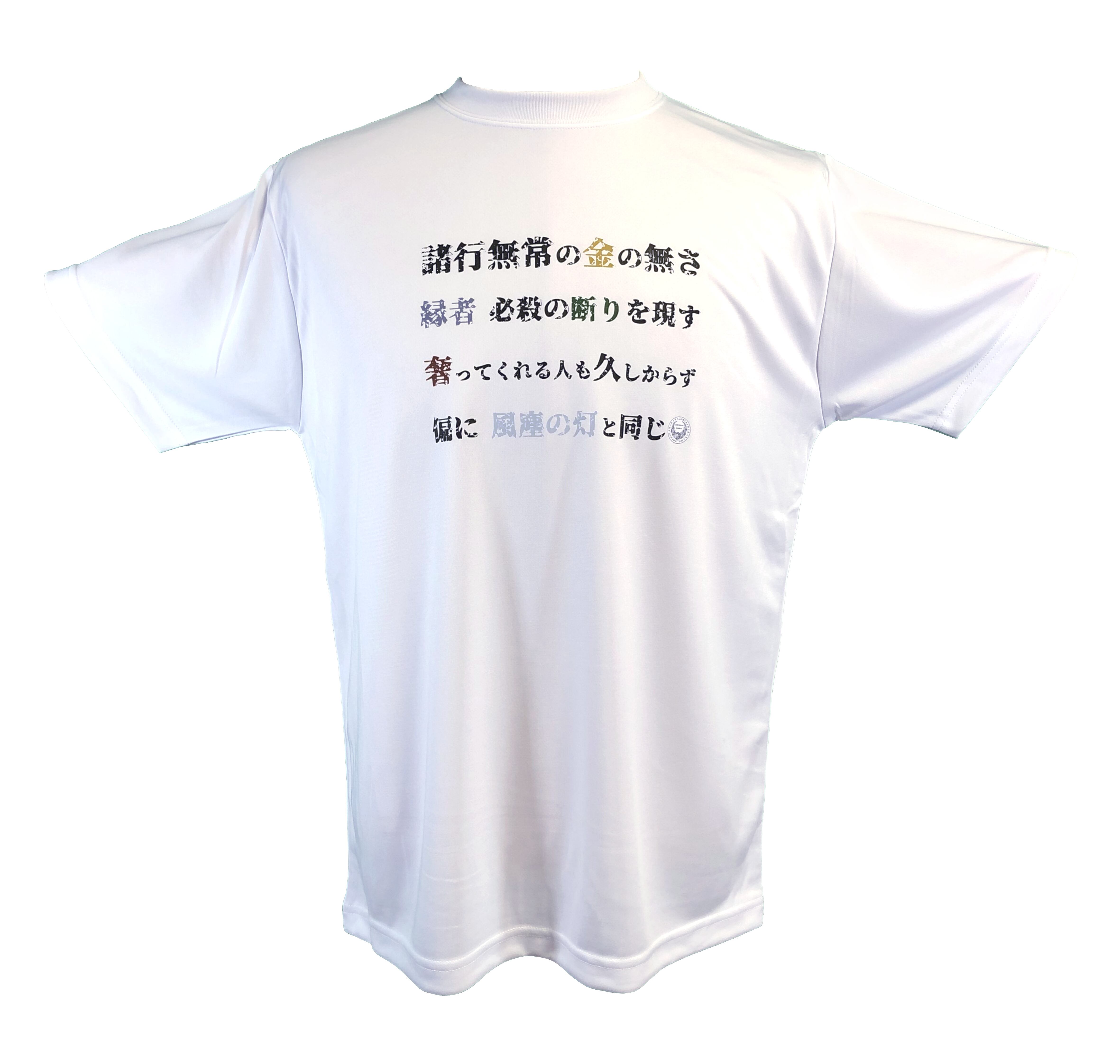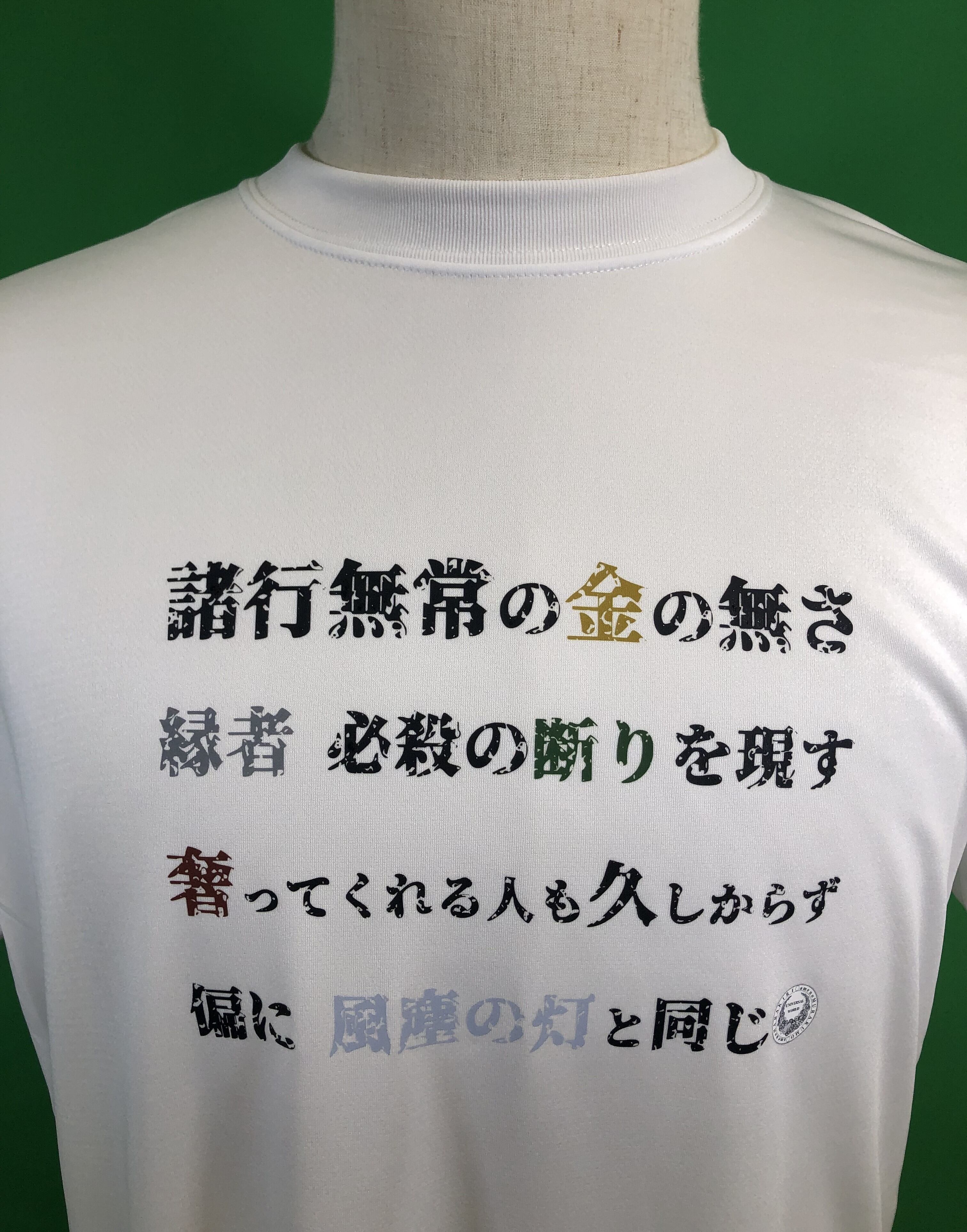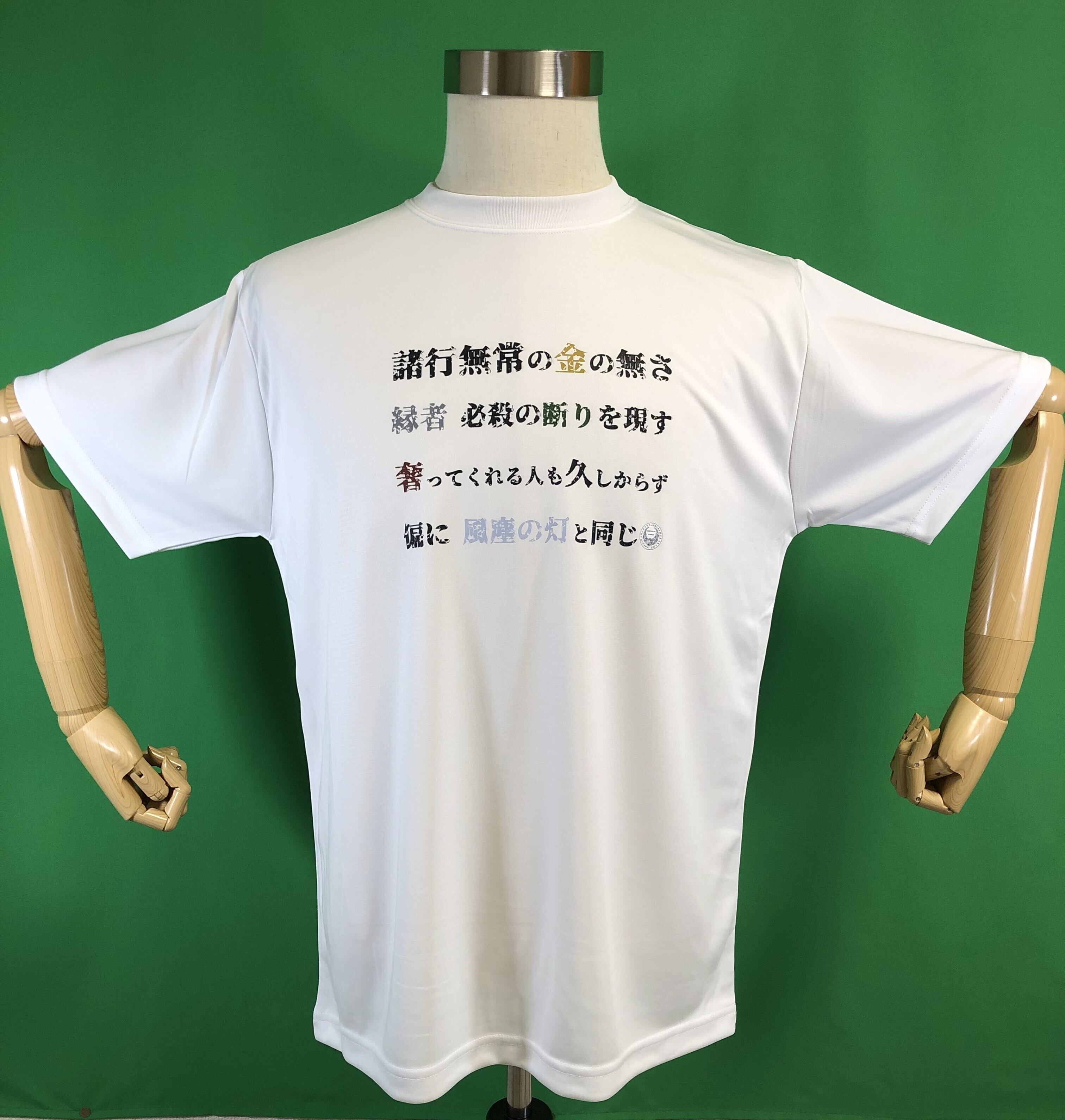 銀の絵本「USAKUMA」の新ブランド【 UNIVERSAL WORLD 】ユニバーサルワールドが, 源界明朝フォントで制作した源界明朝Tシャツ。「諸行無常の金の無さ」Tシャツ 白・半袖 | 銀の絵本 「USAKUMA 」