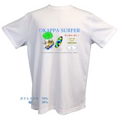 商品名 【陸っ波サーファー】Tシャツ Ⓒ-1 『宮崎・日向・金ヶ浜』 ポリエステル70% 綿30%タイプ 半袖・白 銀の絵本「USAKUMA」セカンドブランド『UNIVERSAL WORLD』の新ライン【陸っ波サーファー】/【OKAPPA SURFER】Tシャツ | 銀の絵本 「USAKUMA 」