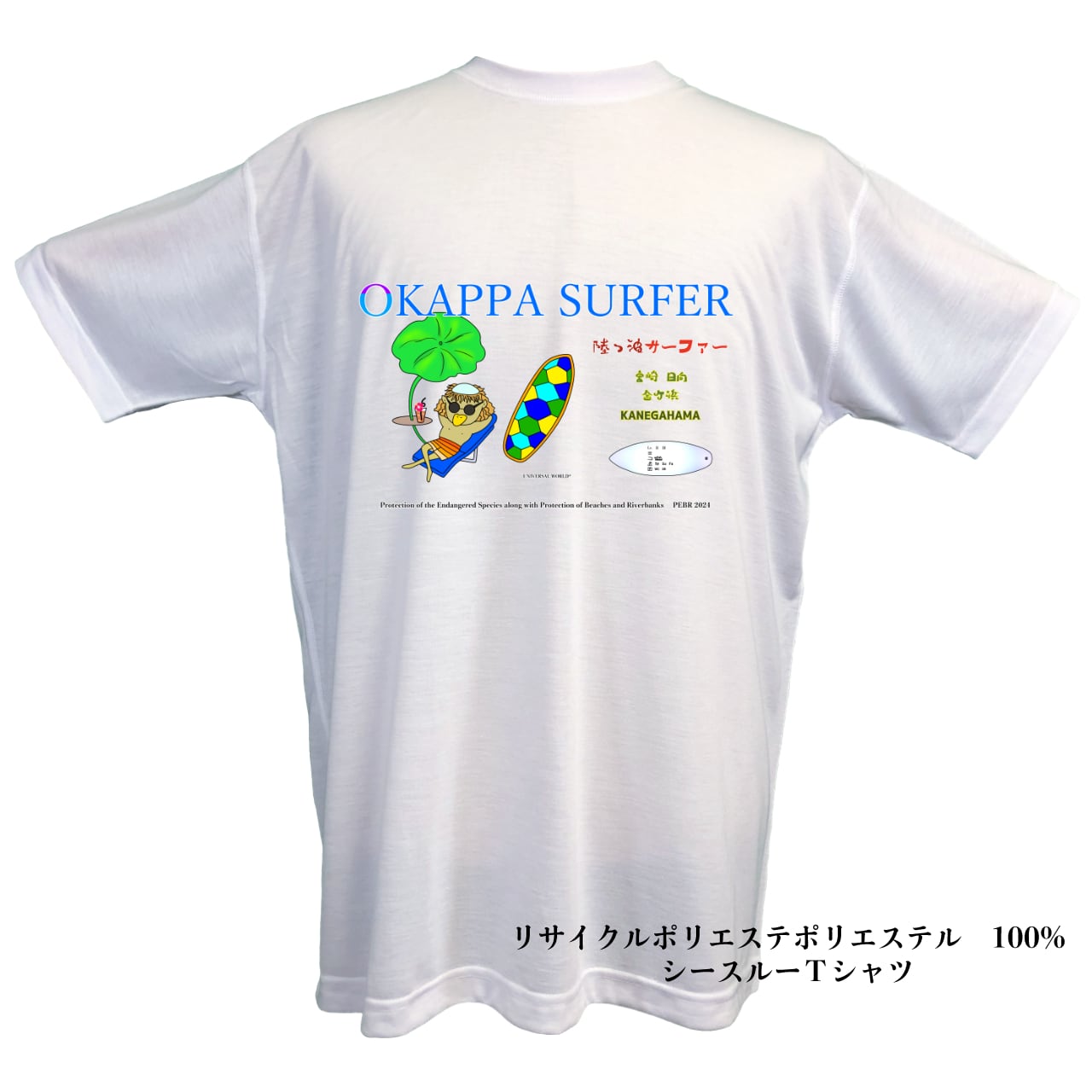 商品名 【陸っ波サーファー】『宮崎・日向・金ヶ浜』Tシャツ Ⓒ-2 ホワイト・半袖 リサイクルポリエステル100% (水着の上に着る専用Tシャツ) 銀の絵本「USAKUMA」セカンドブランド『UNIVERSAL WORLD』に 新しいラインを追加致しました。 | 銀の絵本 「USAKUMA 」