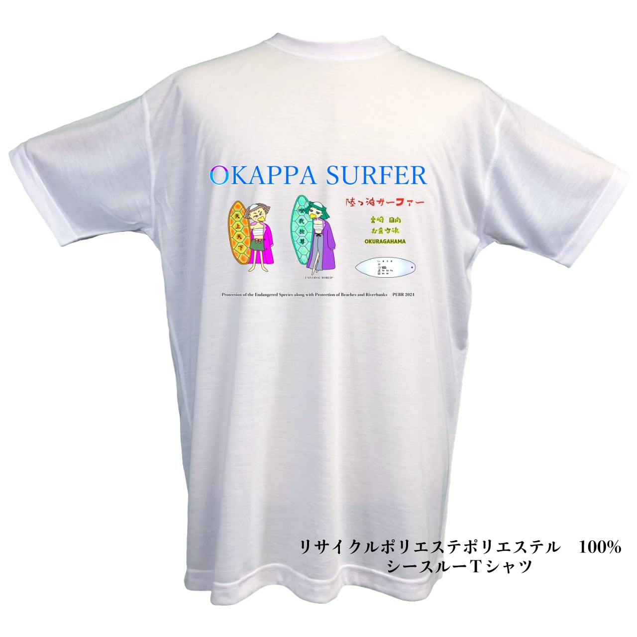 商品名 【陸っ波サーファー】『宮崎・日向・お倉ヶ浜』Tシャツ Ⓓ-2 ホワイト・半袖 リサイクルポリエステル100% (水着の上に着る専用Tシャツ) 銀の絵本「USAKUMA」セカンドブランド『UNIVERSAL WORLD』に 新しいラインを追加致しました。 | 銀の絵本 「USAKUMA 」
